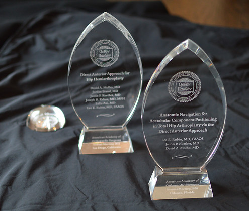 Molho DA, Kuether JP, Rubin LE. Anatomic Navigation for Acetabular Component Positioning in Total Hip Arthroplasty via the Direct Anterior Approach. AAOS Ortho Video Theater. Peer Reviewed Video Publication, CME available. Award Winner. 3/2020.